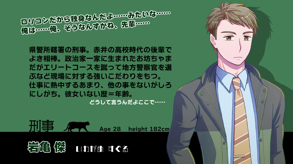 | 攻略対象 | 5人(赤井、有間、岩亀、鶴田、紫藤) |